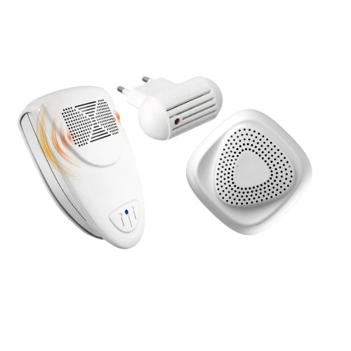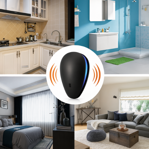 Evalo™ repousse efficacement les moustiques, punaises de lit, mouches, araignées, souris et cafards grâce à une double fréquence ultrasonique multi-zones.