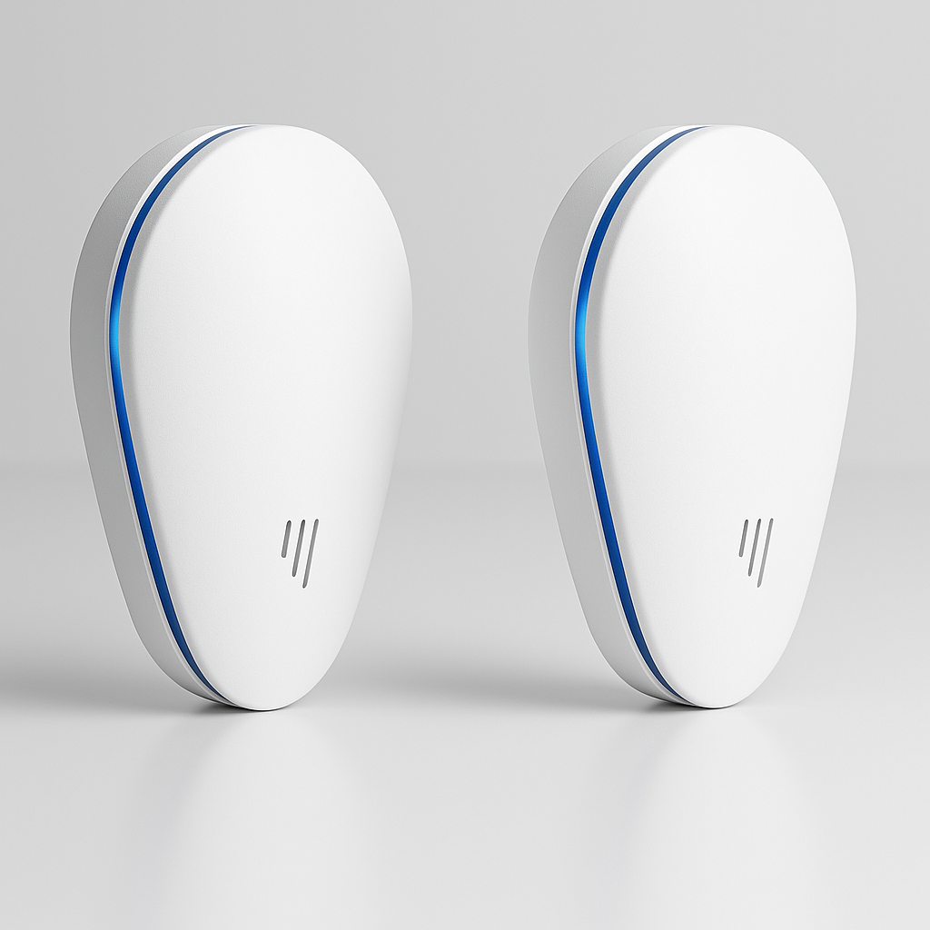 Evalo™ repousse efficacement les moustiques, punaises de lit, mouches, araignées, souris et cafards grâce à une double fréquence ultrasonique multi-zones.